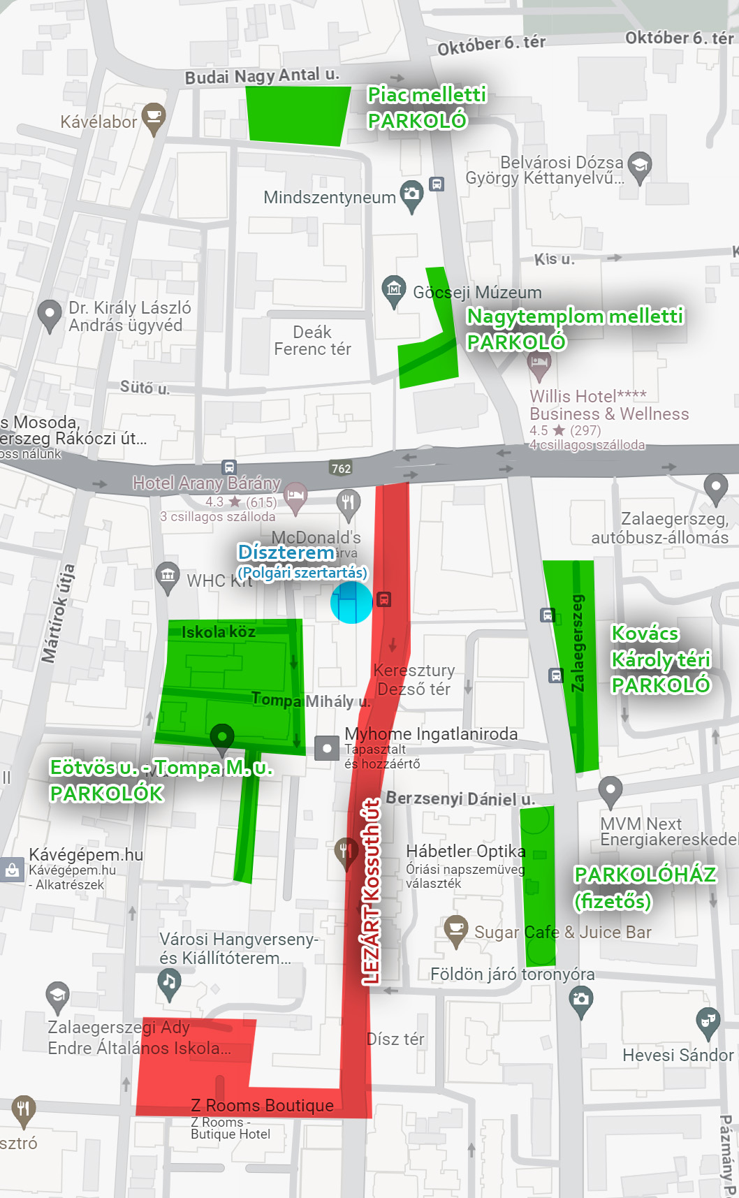 Az esküvőnk napján pont fesztivál lesz Zalaegerszegen (Vadpörkölt feszt), és le lesz zárva a belváros az autók elől, így kissé nehézkes lesz a Díszterem közelében leparkolni. Egyelőre hivatalos információ még nincs a lezárásokról, de az előző évek alapján az alábbiakra lehet számítani.